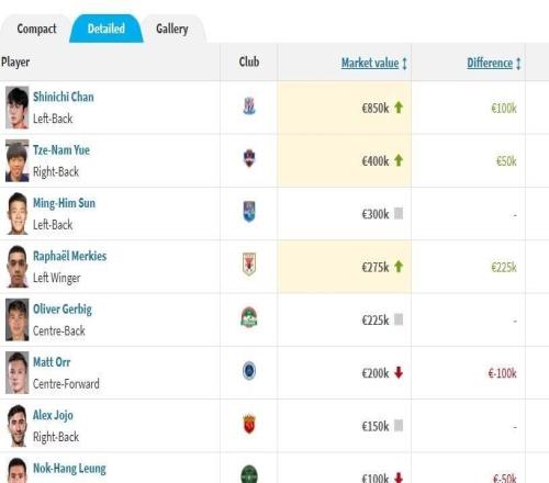 北京时间12月17日,转会市场网公布了中超联赛球员的最新身价,在港台球员中,效力成都蓉城的周定洋以100万欧元身...