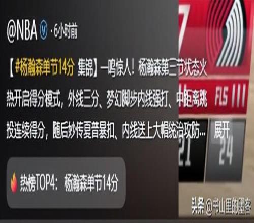10月11日,杨瀚森所在的开拓者队正和国王队进行着惊险的比赛,他们虽然是主场作战,但是过往和国王队交手4-6的战绩还是让开拓者的队员和粉丝们紧张到心脏怦怦跳动。