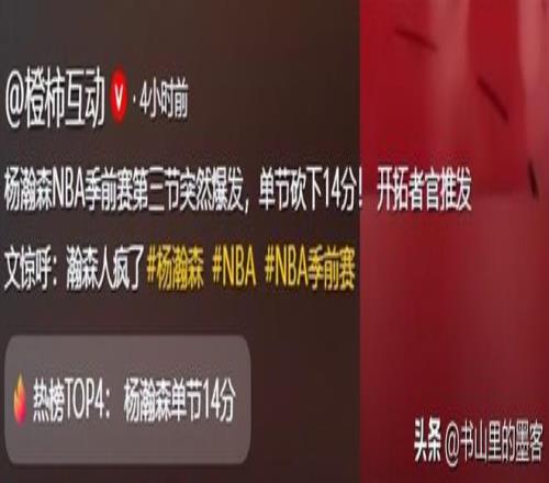 开拓者的第二场季前赛中,杨瀚森出战仅17分钟单人狂砍14分,4篮板1助攻3封盖。