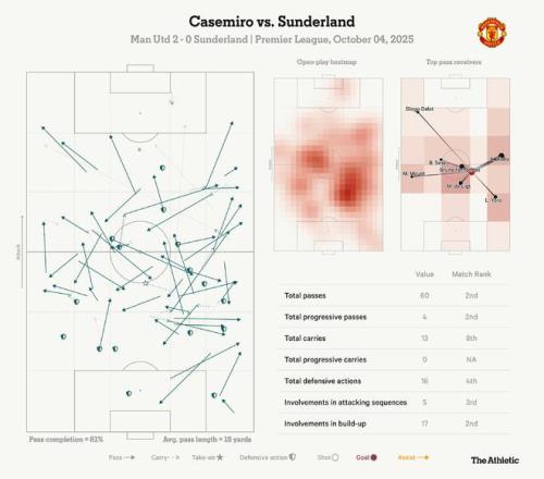 国际比赛日前,曼联2-0击败桑德兰,这场胜利缓解了阿莫林的帅位压力。卡塞米罗在本场比赛中的表现(如下方球员数据面板所示),进一步凸显了他在球队中的重要性。