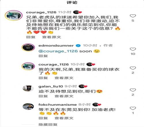 广东宏远俱乐部已经官宣了三名外援的加盟,杰尔·麦考尔、特雷维林·奎因、贾里德·萨林杰。其实,还差一名外援,那就是CBA上赛季得分王,超级外援萨姆纳!萨姆纳到底来不来?现在终于有好消息了,广东球迷去萨姆纳动态下方留言,希望你可以加入我们,萨姆纳回复该球迷,很快!
