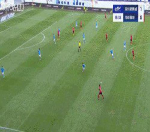 第19分钟,古尔芬克尔左路传中,费利佩头球扳平比分,深圳新鹏城1比1成都蓉城。
