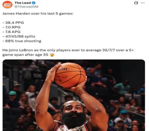 凭借这样的表现,36岁老哈登一战一口气创下9大纪录。